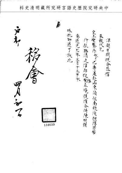 資源導覽:題名:戶部為克什德奏東豫漕船全數催過天津關日期 | 中央研究院數位典藏資源網