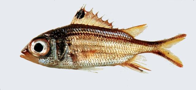 | 型態特徵:體較細長,中等側扁。頭部具黏液囊,外露骨骼多有脊紋。眼大。口端位,裂斜。下頜凸出於上頜。頜骨、鋤骨及顎骨均有絨毛狀群齒。前鰓蓋骨後下角具ㄧ強棘;鰓蓋骨及下眼眶骨均有強弱不一的硬棘。體被大型櫛鱗;側線完全,側線鱗數38-43,側線至背鰭硬棘中間點之鱗片數2.5。背鰭連續,單一,硬棘部及軟條部間具深凹,具硬棘X-I,軟條11-12 (通常為12) ;最後一根硬棘長於前一根硬棘。臀鰭有硬棘 IV ,軟條7-8 (通常為8) ;胸鰭軟條 13-14 (通常為14) ;尾鰭深叉形。體側上方略帶桃色的銀色,下方銀色; 在每個鱗片上有一個暗紅色到黑色的斑點。沿著側線上具ㄧ條淡紅的斑紋。背鰭、臀鰭及尾鰭的外緣淡紅色;胸鰭淡粉紅色;腹鰭白色。 棲所生態:主要棲息在潟湖及珊瑚礁區,是在群游夜行性魚類。白天棲息在珊瑚的枝椏堆中,或礁石穴內並不十分隱密的處所,以捕食等腳類為生;晚上會稍稍游出枝椏外,這時它又換口味改捕捉小蝦蟹等為食物。 地理分佈:廣泛分佈於印度-太平洋區之溫熱帶海域, 西起紅海及東非,東到馬貴斯群島與迪西島, 北至日本南部、小笠原群島與夏威夷群島,南至澳洲北部與羅德豪島。臺灣分佈於東北部、北部、東部、南部、澎湖、小琉球、蘭嶼和綠島等海域。 漁業利用:一般以一支釣及延繩釣的方法捕獲。魚肉白,但質地較爛,煮湯時肉易散開且多溶解油質,因此適合抹鹽油煎食用。唯須注意其內臟可能累積熱帶海魚毒。而它的鱗片及棘刺尖利,需小心刺傷。在水族館中也有人看上它鮮紅的體色,將它飼養做為觀賞魚。 |